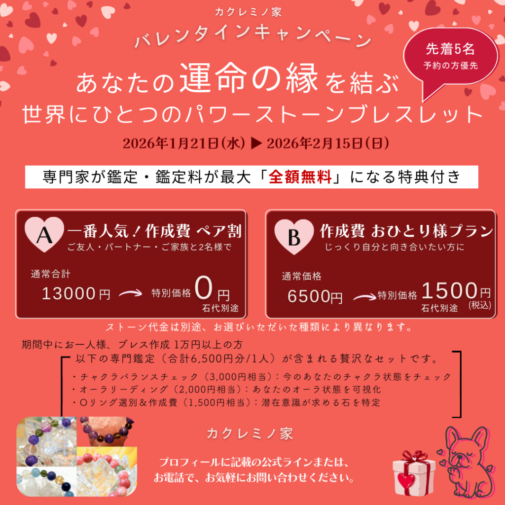 「今の自分を変えたい」「人生を前向きに進めたい」──そんな想いを持つ方々のために、オーラ診断とパワーストーンブレスのセッションを行っています。